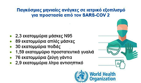 Ο ΠΟΥ έχει μέχρι στιγμής αποστείλει σχεδόν μισό εκατομμύριο σετ ατομικής προστασίας σε 47 χώρες, αλλά οι προμήθειες εξαντλούνται γρήγορα.