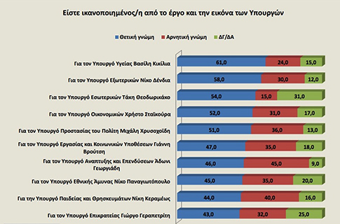 Ωφελημένος από την κρίση εμφανίζεται και ο υπουργός Υγείας Βασίλης Κικίλιας, ο οποίος συγκεντρώνει τις περισσότερες θετικές κρίσεις (61%) και τις λιγότερες αρνητικές (24%) μεταξύ των συναδέλφων του στο υπουργικό συμβούλιο.