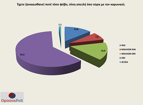 Για πάνω από το 80% των ερωτηθέντων, μάλιστα, ο φόβος για την επιδημία είναι πρωτόγνωρος.