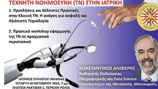 Webinar για την Τεχνητή Νοημοσύνη στην Ιατρική"Ο ρόλος της τεχνητής νοημοσύνης στην ιατρική: ασφάλεια και αξιοπιστία, λήψη ιστορικού, κλινική εξέταση, διάγνωση και θεραπεία".