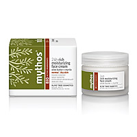 H 24h Rich Moisturizing Face Cream Mythos (24ωρη πλούσια ενυδατική κρέμα προσώπου) είναι ειδικά σχεδιασμένη για να προσφέρει βαθιά ενυδάτωση, καθώς η πλούσια σύνθεσή της σε βιολογικά συστατικά, όπως το βούτυρο ελιάς, η μυρτιά, το ρόδι, η τζοτζόμπα και η γλυκερίνη αποτελεί ολοκληρωμένη καθημερινή περιποίηση.