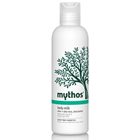 Το Body Milk Mythos (γαλάκτωμα σώματος) με ελιά, αλόη, βούτυρο καριτέ, φύκια και αμυγδαλέλαιο, λεκιθίνη και βιταμίνη Ε είναι η ολοκληρωμένη λύση για καθημερινή φυσική ενυδάτωση και φροντίδα της επιδερμίδας μας. Το BodyMilk προσφέρει τέλεια ελαστικότητα και αναζωογόνηση του δέρματος, διεισδύει βαθιά, εκεί που πραγματικά η επιδερμίδα μας έχει ανάγκη.