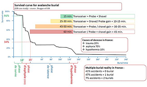 Η ζωή του εμπλεκόμενου σε μια χιονοστιβάδα εξαρτάται αποκλειστικά από τους συντρόφους του, τον εξοπλισμό τους και πόσο καλά εκπαιδευμένοι είναι οι ίδιοι, καθώς ο μέσος χρόνος ζωής είναι 15 λεπτά. Με την κατάλληλη εκπαίδευση, όμως, όλοι μπορούν να βοηθήσουν και να σώσουν όποιον κινδυνεύει.
