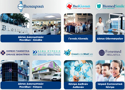 Διαθέτει, επίσης, τρεις κλινικές, την Βιοκλινική Αθηνών, Πειραιά και Θεσσαλονίκης, οι οποίες αποτελούν πρότυπα σύγχρονων νοσοκομειακών μονάδων υψηλής ποιότητας, ένα Κέντρο Διεθνών Ασθενών και οκτώ Οδοντιατρικές Μονάδες (Αθήνας, Αλίμου, Καλλιθέας, Κηφισιάς, Μαρκόπουλο, Θεσσαλονίκης, Καλαμαριάς, Ευόσμου).