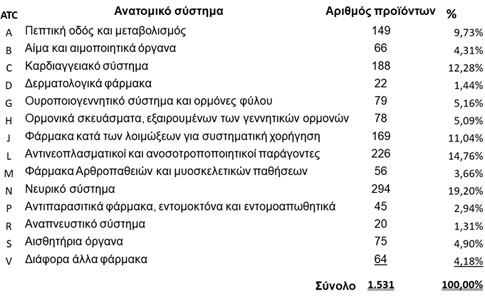 - Φάρμακα κατά των λοιμώξεων για συστηματική χορήγηση 169 σκευάσματα (11,04%)
