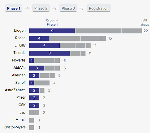 Αν και η λύση του Alzheimer φαίνεται μακριά, οι φαρμακοβιομηχανίες έχουν σημειώσει νίκες σε άλλες νευρολογικές ασθένειες όπως η σπονδυλική μυϊκή ατροφία, όπου ένα γενετικό ελάττωμα προκαλεί την απώλεια των μυών των ασθενών. Οι αποτελεσματικές θεραπείες από την Biogen και τη Novartis έχουν έρθει στην αγορά από το τέλος του 2016, ενώ ένα τρίτο σχετικό σκεύασμα από τη Roche θα μπορούσε να εγκριθεί πριν από τον Ιούνιο.