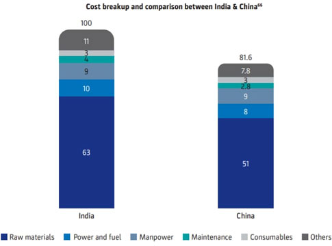 - Το κόστος των πρώτων υλών στην Ινδία είναι 25-30% υψηλότερο από ό, τι στην Κίνα.