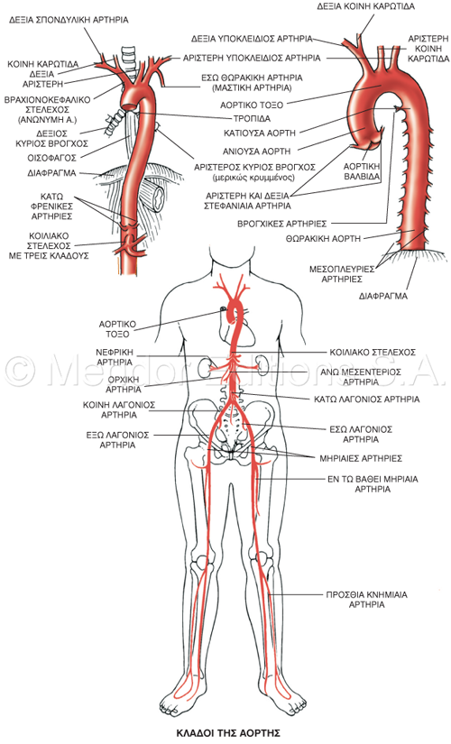 Οι διακλαδώσεις της αορτής είναι οι ακόλουθες: