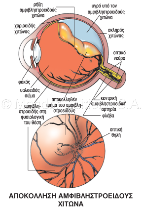 από τον αμφιβληστροειδή, με αποτέλεσμα την ανύψωση της εσώτερης στιβάδας του. Τα αίτια περιλαμβάνουν το τραύμα και οποιαδήποτε πάθηση προκαλεί
