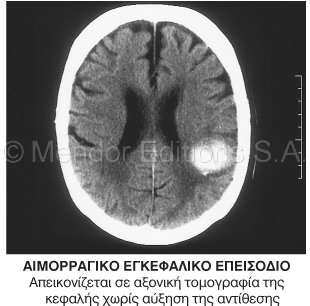 ενδοεγκεφαλικών αρτηριών από θρόμβους ή αθηροσκλήρωση), ενώ η πλειονότητα των υπόλοιπων οφείλεται σε ενδοκρανιακή αιμορραγία ή εγκεφαλική