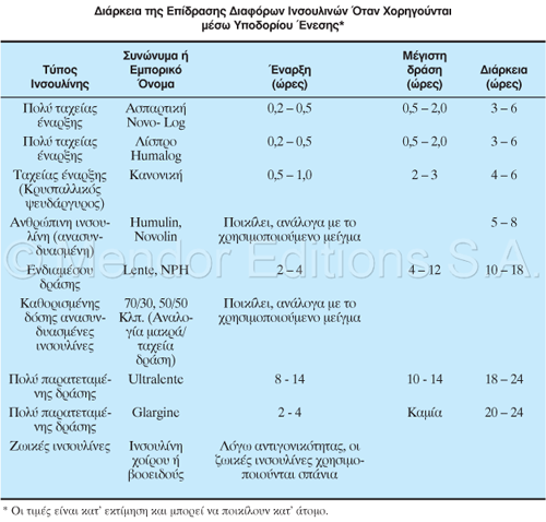 ινσουλίνης διαφέρουν όσον αφορά την ταχύτητα με την οποία δρουν και την διάρκειά τους και δραστικότητά τους μετά από υποδόρια ένεση.