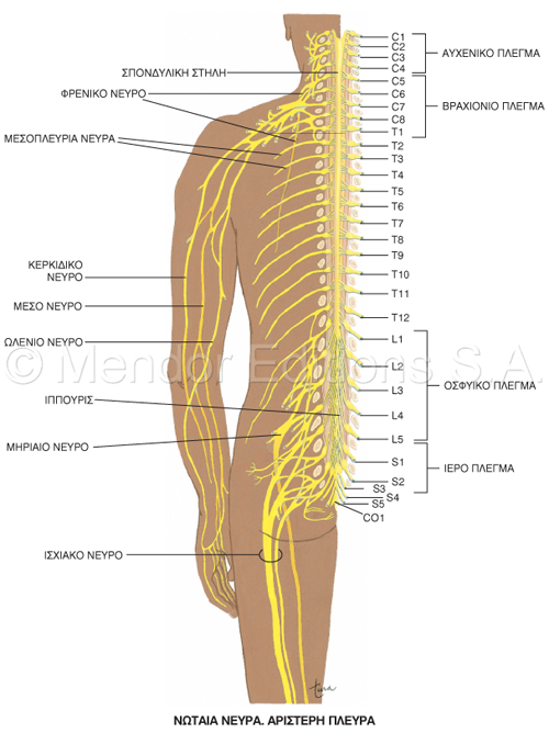 Ένα από τα νεύρα τα οποία εκφύονται από το νωτιαίο μυελό: 31 ζεύγη αποτελούμενα από οκτώ αυχενικά, 12 θωρακικά,