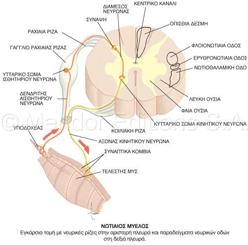μυελού, καθώς και αυτούς που τον εγκαταλείπουν ως τμήματα περιφερικών νεύρων. Ο νωτιαίος μυελός είναι η οδός αισθητηρίων ώσεων προς τον εγκέφαλο