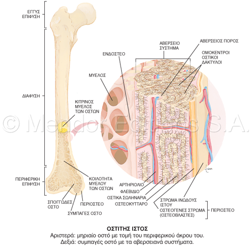 οστών αποτελείται από συμπαγές οστό, το οποίο περιβάλλει το σωλήνα του μυελού των οστών. Το συμπαγές οστό αποτελείται από τα αβέρσεια συστήματα,