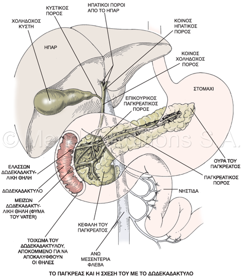 σχηματίσουν την ηπατοπαγκρεατική λήκυθο, που εκβάλλει στο δωδεκαδάκτυλο. Συχνά υπάρχει και ένας επικουρικός παγκρεατικός πόρος ή πόρος του