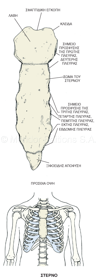 Το στενό, επίπεδο οστό, πρόσθια στη μέση γραμμή του θώρακα. Αποτελείται από τρία τμήματα: τη λαβή, το σώμα και την ξιφοειδή απόφυση.Βλ.: Εικόνα...