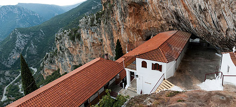 Είναι λαξευμένη στο βράχο, διακόσια μέτρα πάνω από την κοίτη του Λούσιου, στην καρδιά του καταπράσινου φαραγγιού του. Γνωστή και ως Μέγα Σπήλαιο, είναι δημοφιλής προορισμός για τους λάτρεις της πεζοπορίας. Χρονολογείται από τον 12ο αιώνα, ενώ οι σωζόμενες αγιογραφίες της είναι από τον 16ο.