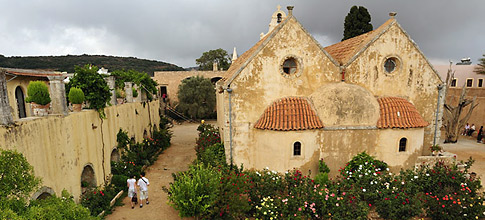 Η παράδοση την θέλει να θεμελιώνεται από τον αυτοκράτορα Ηράκλειο του Βυζαντίου τον 5ο αιώνα. Είναι κτισμένη στο καταπράσινο οροπέδιο πάνω από το φαράγγι του βουνού Ίδη, 23 χιλιόμετρα έξω από το Ρέθυμνο.