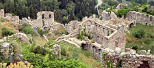 Το εγχείρημα ακούγεται πολύ ευκολότερο απ’ ό,τι είναι στην πραγματικότητα, καθότι ακόμη κι αυτή η «εύκολη» λύση προϋποθέτει τουλάχιστον δέκα λεπτά ανάβασης μέχρι τα τείχη του κάστρου που στεφανώνει το λόφο του Μυστρά. Η διαδρομή, όμως, στο λιθόκτιστο μονοπάτι που ελίσσεται ανάμεσα σε πυκνή βλάστηση και η μαγευτική θέα από την κορυφή του λόφου στον κάμπο της Σπάρτης θα σας αποζημιώσει με το παραπάνω.