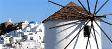 Σε παρασύρει σε ατελείωτες βόλτες ανάμεσα σε κατάλευκα εκκλησάκια, σε στενά σοκάκια που διακόπτονται από ελάχιστους ανοιχτούς χώρους, όπως η πλατεία του Δημαρχείου (ή Πιάτσα της Άνω Χώρας) που στεγάζεται σε ένα πανέμορφο νεοκλασικό κτίριο, και η πλατεία των Μύλων, με τους δύο αναπαλαιωμένους ανεμόμυλους.