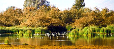 Τιτιβίσματα αγνώστων διαλέκτων ακούγονται πίσω από τις καλαμιές, δυο κατάλευκοι γλάροι συναγωνίζονται σε καλλιτεχνικά αεροδυναμικές βουτιές, πολύχρωμα φτερά μιας πλουμιστής ουράς ίσα που ξεχωρίζουν ανάμεσα στα κλαδιά ενός δέντρου, ένα παραξενεμένο βλέμμα κάτω από ένα λοφίο ξεπροβάλλει πίσω από τον κορμό και παρατηρεί μια παρέα με κιάλια, που μοιάζει συνεπαρμένη από τη δραστηριότητα που βρίσκεται σε εξέλιξη σε αυτό το μοναδικό τοπίο.
