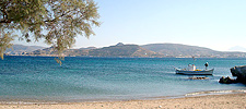 Μια απέραντη αμμουδιά με κατάλευκη, χοντρή άμμο –χαρακτηριστικά που αποκτά από τον μπεντονίτη, υλικό που βρίθει στην περιοχή, εξ ου και το παρακείμενο λατομείο– και τιρκουάζ νερά. Αν ρωτήσετε τους ντόπιους θα σας πουν ότι πρόκειται για την καλύτερη ίσως παραλία του νησιού –και δε θα έχετε παρά να συμφωνήσετε.