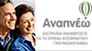 Εκστρατεία ΑΝΑΠΝΕΩ για τη Χρόνια Αποφρακτική ΠνευμονοπάθειαΗ Χρόνια Αποφρακτική Πνευμονοπάθεια αποτελεί σοβαρή αιτία νοσηρότητας και θνητότητας και στην Ελλάδα, καθώς η επίπτωσή της φτάνει στο 8.