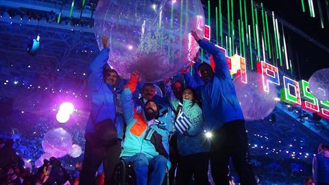 Στιγμιότυπο από την τελετή λήξης των 11ων Παραολυμπιακών Αγώνων, με την ελληνική αποστολή.