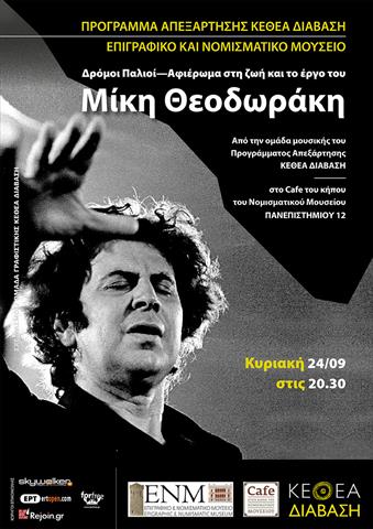 Δρόμοι Παλιοί-Αφιέρωμα στη ζωή και το έργο του Μίκη Θεοδωράκη από την ομάδα μουσικής του Πολιτιστικού Στεκιού του ΚΕΘΕΑ ΔΙΑΒΑΣΗ σε συνδιοργάνωση με το Επιγραφικό και Νομισματικό Μουσείο