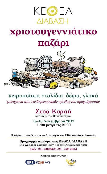 Πρόγραμμα Απεξάρτησης ΚΕΘΕΑ ΔΙΑΒΑΣΗ σας προσκαλεί στο Χριστουγεννιάτικο Παζάρι του, στη Στοά Κοραή (στάση μετρό : ΠΑΝΕΠΙΣΤΗΜΙΟ)την Παρασκευή 15...