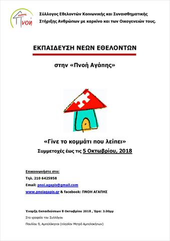 Περισσότερες πληροφορίες: 210 6425958 email: Pnoi.agapis@gmail.com www.pnoiagapis.gr facebook: pnoi agapis