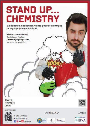 Με θέμα τη χημεία και οδηγό το stand up, ο χημικός - ηθοποιός Δρ. Γιάννης Γουλές φέρνει τη διαδραστική παράσταση για τις φυσικές επιστήμες Stand Up Chemistry στο Μητροπολιτικό Κολλέγιο για μαθητές - 6 ετών και άνω - και τους γονείς τους. Μια παράσταση, ειδικά σχεδιασμένη και για παιδιά με μαθησιακές δυσκολίες όπως η ΔΕΠΥ.