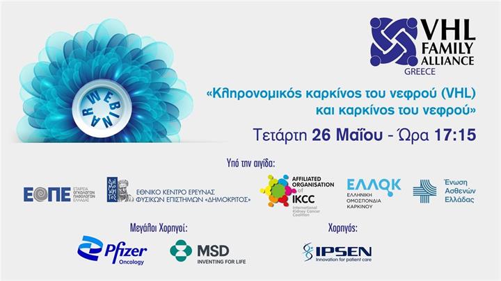Η Οικογενειακή Συμμαχία κατά της νόσου V.H.L Ελλάδος, με αφορμή την ερχόμενη ημέρα καρκίνου του νεφρού πραγματοποίησε Συνέντευξη Τύπου. Σε μια προσπάθεια ευαισθητοποίησης του κοινού για θέματα που άπτονται του καρκίνου του νεφρού, η παγκόσμια κοινότητα που απαρτίζεται από πάσχοντες με καρκίνο του νεφρού (που είναι η κύρια κακοήθεια του V.H.L που αποτελεί τον κυριότερο κληρονομικό καρκίνο του νεφρού), τους φροντιστές, τις οικογένειες αυτών, αλλά και τους επαγγελματίες υγείας, επέλεξαν για φέτος την 17η Ιουνίου ως την Παγκόσμια Ημέρα Καρκίνου του νεφρού.