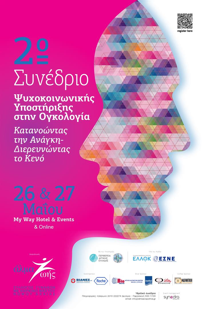 Ο Σύλλογος Γυναικών με Καρκίνο Μαστού «ΑΛΜΑ ΖΩΗΣ» Ν. Αχαΐας θα πραγματοποιήσει το 2ο Συνέδριο Ψυχοκοινωνικής Υποστήριξης στην Ογκολογία: Κατανοώντας την Ανάγκη - Διερευνώντας το Κενό στις 26 & 27 Μαΐου στο MY WAY HOTEL & EVENTS στην Πάτρα.