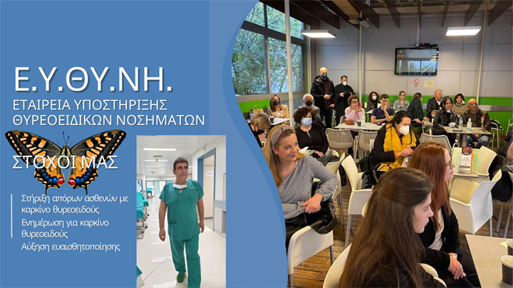 Ιδρύθηκε πριν από λίγο καιρό η Φιλανθρωπική Επιστημονική Αστική Εταιρεία Μη Κερδοσκοπικού Χαρακτήρα με την επωνυμία Ε.Υ.ΘΥ.ΝΗ. (Εταιρεία Υποστήριξης Θυρεοειδικών Νοσημάτων).