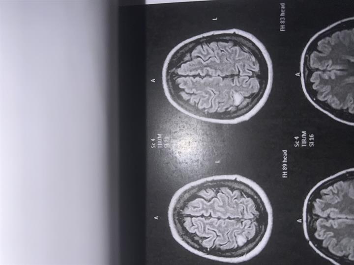 Ανάδειξη εστίας παθολογικής έντασης mr σήματος στο φλοιό του εγκεφάλου βρεγματικά δεξιά δίχως παθολογικό εμπλουτισμό μετά την ενδοφλέβια χορήγηση παραμαγμητικου σκιαγραφικού μέσου. (Δ/δ γλοιωτικη εστία)