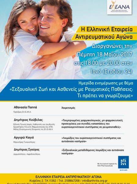 Δείτε ολόκληρη την εκδήλωση με θέμα ”Σεξουαλική ζωή και ασθενείς με ρευματικές παθήσεις”,που πραγματοποιήθηκε στις 18/5 στον ΙΑΝΟ, στο παρακάτω link: