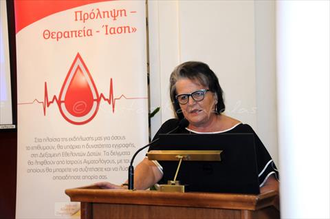 Στη συνέχεια, χαιρετισμό απηύθυνε και η Κα Ιωάννα Καραβάνα, Πρόεδρος Δ.Σ Συλλόγου Καρκινοπαθών Λάρισας και μέλος Δ.Σ της Ελληνικής Ομοσπονδίας Καρκίνου-ΕΛΛ.Ο.Κ, η οποία αναφέρθηκε στα προβλήματα που αντιμετωπίζουν οι ασθενείς με αιματολογικό καρκίνο, ειδικότερα δε οι κάτοικοι της ελληνικής περιφέρειας. Συγκεκριμένα, η Κα Καραβάνα αναφέρθηκε στις ολοκληρωμένες δράσεις και στο σχεδιασμό της ΕΛΛ.Ο.Κ. για την επίλυση των ζητημάτων που προκύπτουν στους ασθενείς.