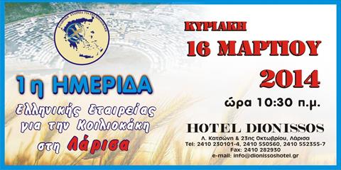 Η Ελληνική Εταιρεία για την Κοιλιοκάκη διοργανώνει την πρώτη ημερίδα στη Λάρισα για την Κοιλιοκάκη με τίτλο :