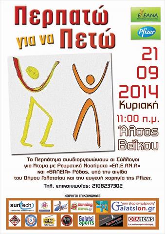 Το περπάτημα θα πραγματοποιηθεί την Κυριακή 21 του Σεπτέμβρη στο πάρκο Βείκου στις 11.00 σε διαδρομή του ενός χιλιομέτρου. Την ίδια μέρα στη Ρόδο και την Πάτρα θα γίνει ταυτόχρονη συμμετοχή στην εκδήλωση. Η εκδήλωση πραγματοποιείται με την αιγίδα του Δήμου Γαλατσίου και τη χορηγία της Pfizer