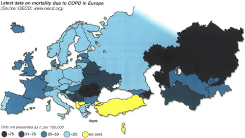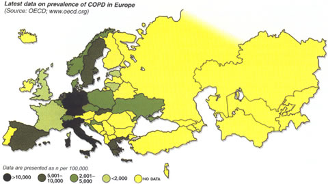 ΕΙΚΟΝΑ 1. Συχνότητα της ΧΑΠ στην Ευρώπη (αριθμός πασχόντων ανά 100.000 πληθυσμού)