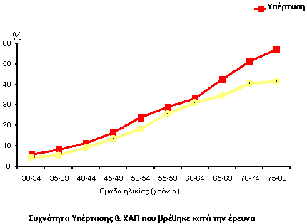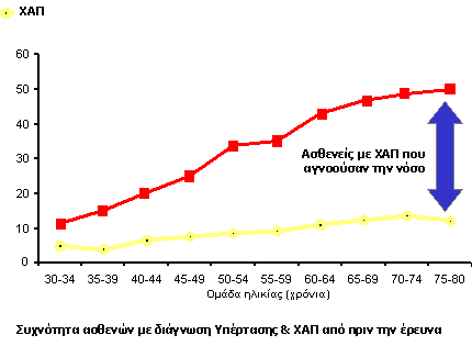 Η ΧΑΠ συμβαδίζει σε συχνότητα με το ποσοστό των υπερτασικών. Μόνο που το σύνολο των υπερτασικών που προσμέτρησε η έρευνα ήδη το γνώριζε ότι πάσχει από υπέρταση, ενώ μόνο το ¼ των ασθενών με ΧΑΠ ήξερε ότι έπασχε. Οι υπόλοιποι το πληροφορήθηκαν πρώτη φορά από τους ερευνητές.