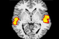 Στην παραπάνω απεικόνιση καταγράφεται η νευρωνική δραστηριότητα στον εγκέφαλο, όπως προκύπτει μέσω της σχετικά πρόσφατης μεθόδου νευροαπεικόνισης που ονομάζεται 'Λειτουργική Απεικόνιση Μαγνητικού Συντονισμού' (ΛΑΜΣ, fMRI) [2].