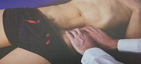 - Η ψηλάφηση είναι ιδιαίτερα σημαντική για την αναγνώριση των επώδυνων δομών και πρέπει να είναι ακριβής, καθώς πολλές δομές της βουβωνικής περιοχής βρίσκονται σε στενή εγγύτητα και δύναται να αντανακλούν τον πόνο σε επικαλυπτόμενες περιοχές