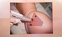 Η εναπόθεση ασβεστίου φαίνεται καθαρά στις ακτινογραφίες αριστερά, ενώ αυτές δεξιά έχουν ληφθεί μετά την εφαρμογή της θεραπείας όπου το ασβέστωμα έχει εξαλειφθεί.