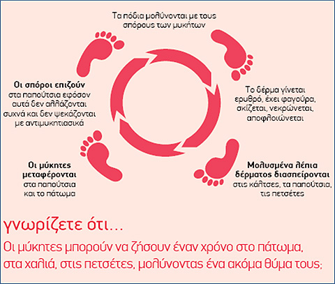 Οι σπόροι επιζούν στα παπούτσια εφόσον δεν αλλάζονται συχνά ή δεν ψεκάζονται με αντιμυκητισιακά