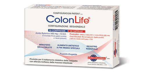 Το Colon Life συνδυάζει την αντιβιοτική δράση του GSE με την αντιφλεγμονώδη του βουτυρικό οξέος με φυσικό τρόπο, σεβόμενο τη μικροχλωρίδα του εντέρου. Το Colon Life είναι η νέα διαδοχική θεραπεία για την αντιμετώπιση παθήσεων του παχέος εντέρου με τριπλή δράση (αντιφλεγμονώδης, αντιβιοτική, βελτίωση εντερικής μικροχλωρίδας). Η διαδοχική αυτή θεραπεία ενισχύει την αποκατάσταση του εντερικού βλεννογόνου από φλεγμονές ή αλλοιώσεις που έχουν προκληθεί και έτσι σε ένα υγιές έντερο μπορούν έπειτα να αποικήσουν τα προβιοτικά του Colon Life.