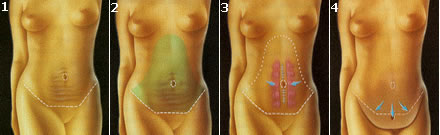 Στη μερική κοιλιοπλαστική, το δέρμα χωρίζεται μόνο μεταξύ της τομής και του ομφαλού.