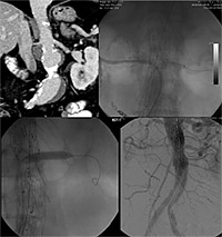 Μέσα από τις οπές και τους κλάδους αυτούς καθετηριάζονται τα νεφρικά και σπλαχνικά αγγεία (εικ.2,3), τα οποία διασφαλίζονται και επαναιματώνονται με νέα μικρότερα ενδαγγειακά μοσχεύματα που εισάγονται μέσα από το κύριο μόσχευμα.