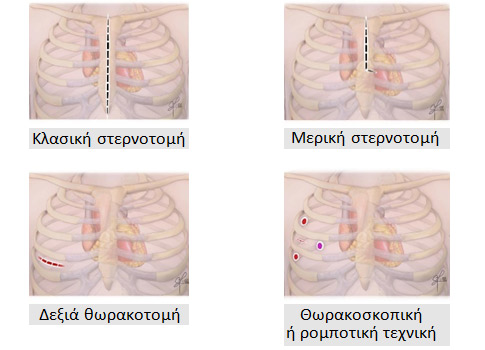 Μια ελάχιστα επεμβατική προσέγγιση μέσα από το κέντρο του στέρνου είναι διαθέσιμη για επιλεγμένους ασθενείς των οποίων η ανατομία αντιμετωπίζεται καλύτερα μέσω αυτής της τομής. Ελάχιστα επεμβατικές προσεγγίσεις μπορούν επίσης να χρησιμοποιηθούν για ασθενείς που χρειάζονται χειρουργική επέμβαση της αορτικής της ή τριγλώχινας βαλβίδας, μόνη ή σε συνδυασμό με χειρουργική επέμβαση μιτροειδούς βαλβίδας. Επιπλέον, σήμερα υπάρχουν τεχνικές διαδερμικής (μέσω του δέρματος) αναίμακτης προσεγγίσης για την επισκευή της μιτροειδούς βαλβίδας ή αντικατάστασης της αορτικής βαλβίδας σε ασθενείς υψηλού κινδύνου.